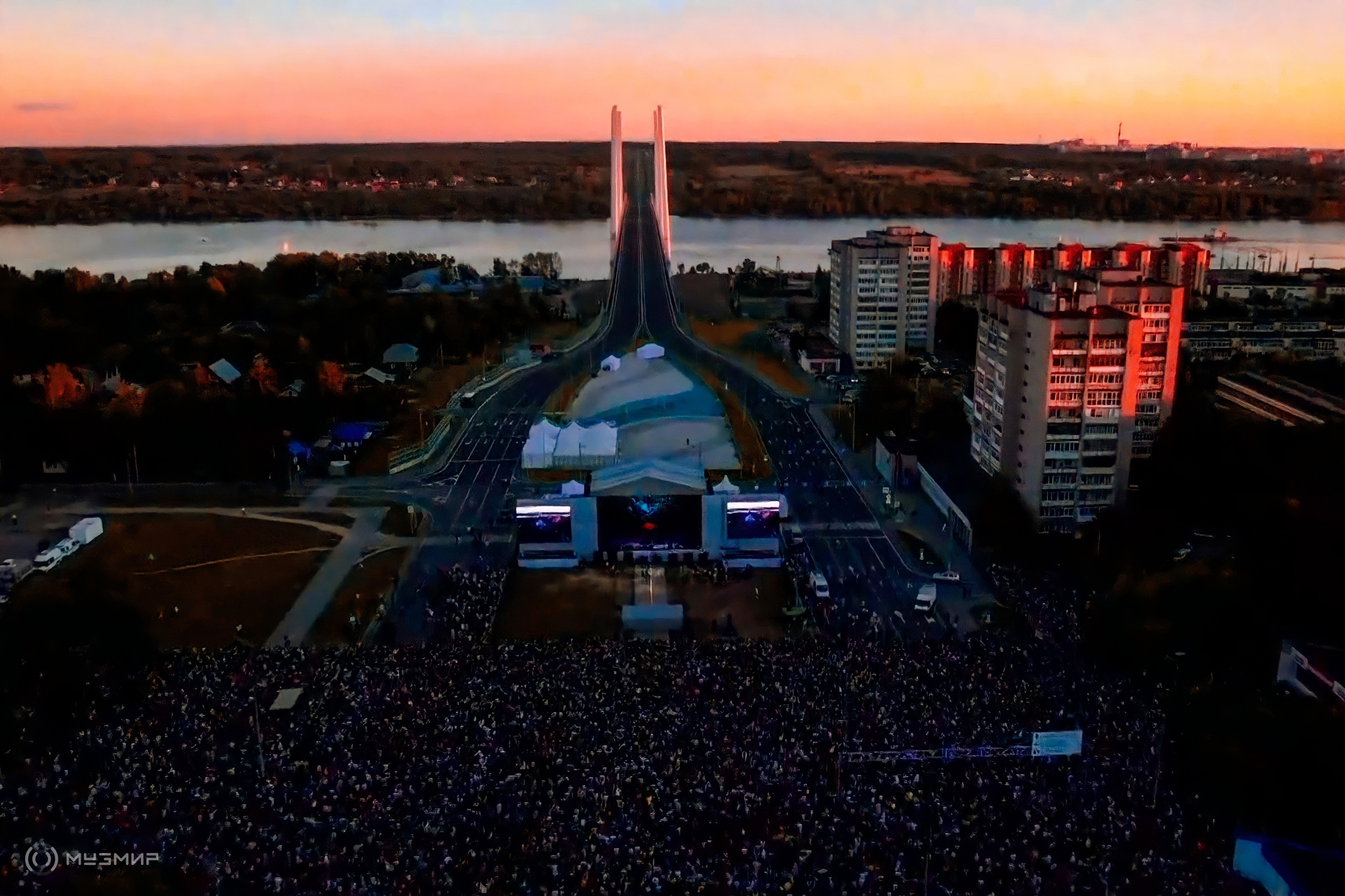 Масштабы открытия Архангельского моста в Череповце поражают. Один лишь «концертный зал» раскинулся на 400 метров. Команда МузМир работала прямо на передовой c MF Group и Show World.