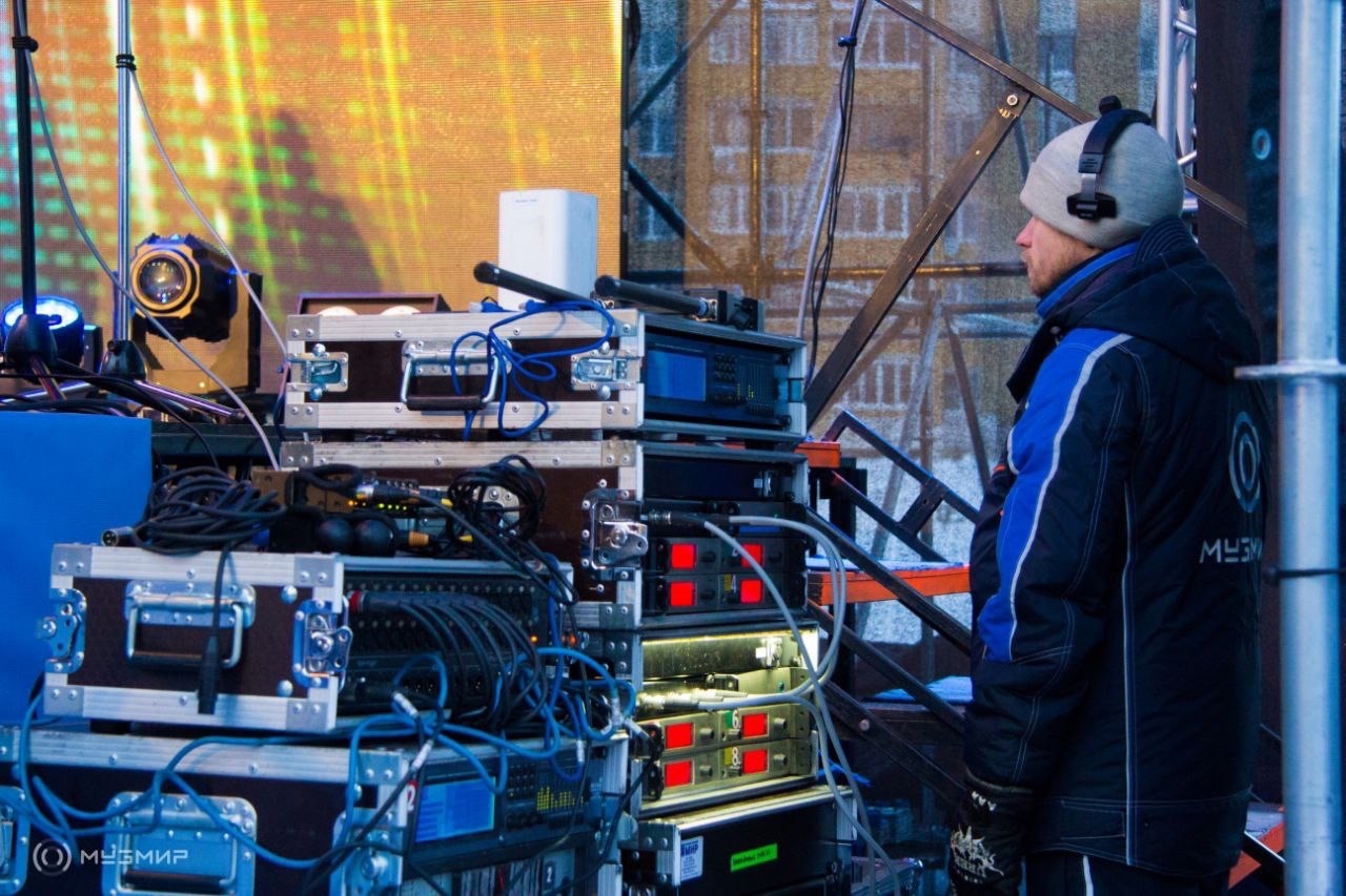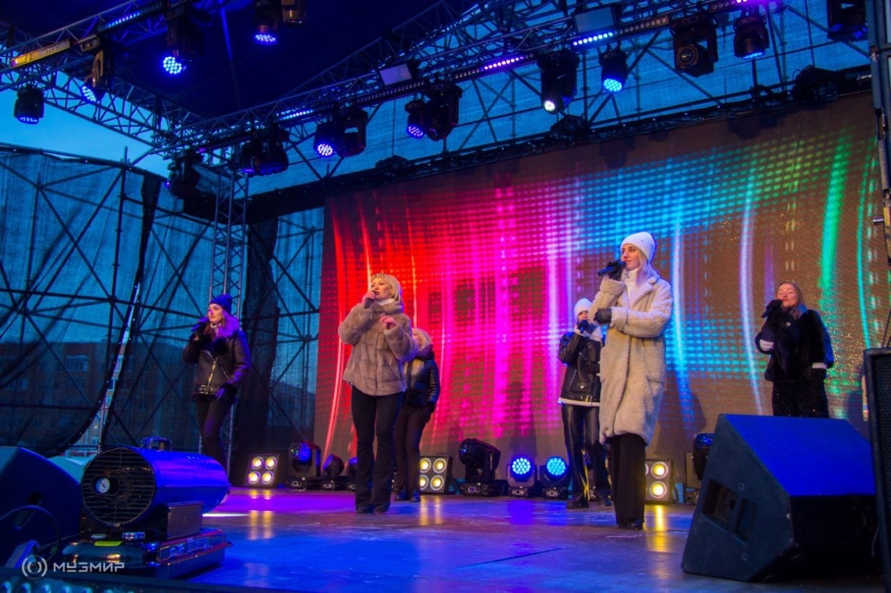 И это был действительно тёплый концерт, несмотря на двадцатиградусный мороз. Атмосферу праздника создали лучшие творческие коллективы города. Зажигательные конкурсы и танцы согревали зрителей! Технические специалисты МузМир строили уличный комплекс в 35 градусов мороза в течение трех дней и это действительно было серьёзным испытанием для людей и техники!