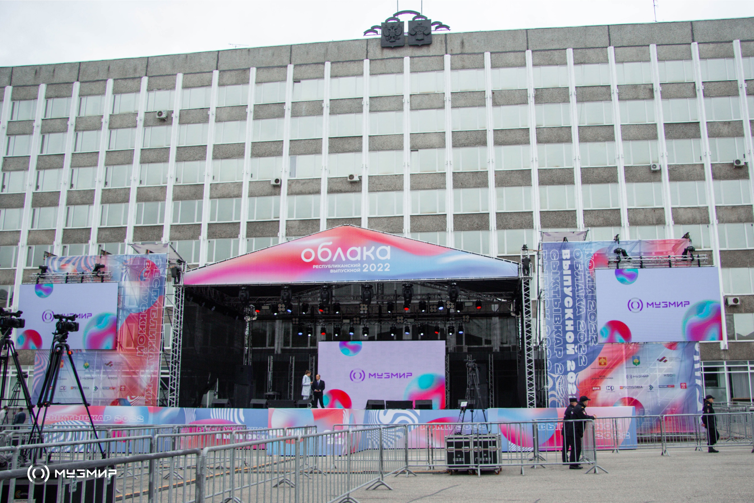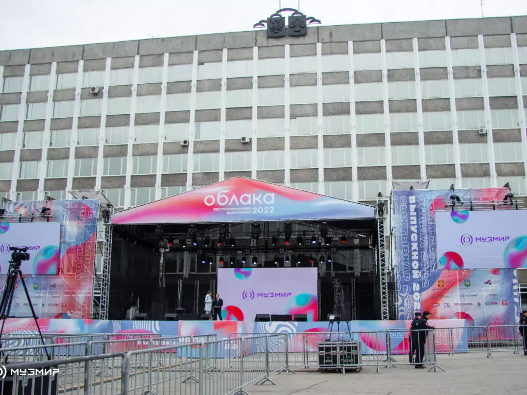Собрали для «Облаков-2022» сценический комплекс и ОДЕЛИ его в новый образ. Нежные цвета рассветно - закатного вайба сделали площадь героем вечера на сером асфальте.