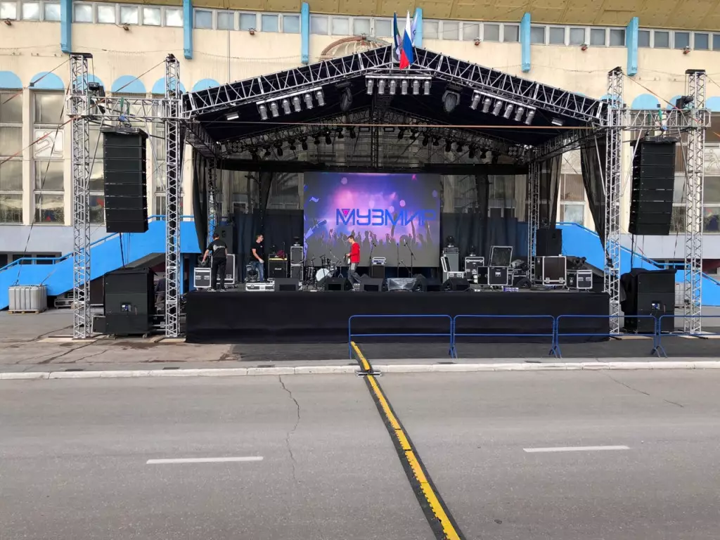 Воркута День Шахтера 2018 Специалисты компании привезли в Воркуту сценический павильон, звуковое и световое оборудование павильон звук свет